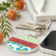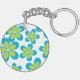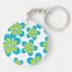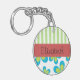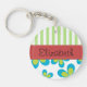 Pattern Of Flowers, Green Stripes, Your Name Key Ring