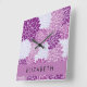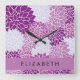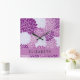 Pattern Of Flowers, Purple Dahlia, Your Name Square Wall Clock