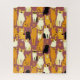 Puzzle in a playful pattern of stylised cats in warm shades of ginger, cream, black, and brown on a caramel brown background. Each cat has its own cute expression and markings, with little paw prints scattered throughout.