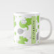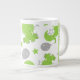 Pattern Of Green Elephants, Stars, Your Name Large Coffee Mug