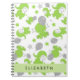 Pattern Of Green Elephants, Stars, Your Name Notebook