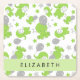 Pattern Of Green Elephants, Stars, Your Name Square Paper Coaster