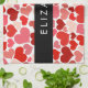 Pattern Of Hearts, Red Hearts, Love, Your Name Tea Towel