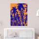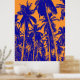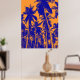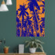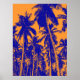 Pattern of leaves. Tropical Palm trees. Bold and impressive graphic abstract palm trees posterised design. Blue and orange.