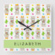 Pattern Of Llamas, Alpacas, Cactus, Your Name Square Wall Clock