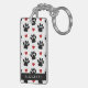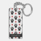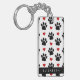 Pattern Of Paws, Black Paws, Red Hearts, Your Name Key Ring