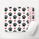 Pattern Of Paws, Black Paws, Red Hearts, Your Name Mouse Pad