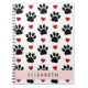 Pattern Of Paws, Black Paws, Red Hearts, Your Name Notebook