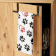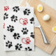Pattern Of Paws, Black Paws, Red Paws, Hearts Tea Towel