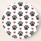 Pattern Of Paws, Dog Paws, Black Paws, Red Hearts Coaster