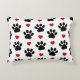 Pattern Of Paws, Dog Paws, Black Paws, Red Hearts Decorative Cushion