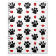 Pattern Of Paws, Dog Paws, Black Paws, Red Hearts Notebook