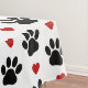Pattern Of Paws, Dog Paws, Black Paws, Red Hearts Tablecloth