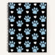 Pattern Of Paws, Dog Paws, Blue Paws, White Hearts Notebook