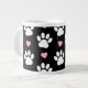 Pattern Of Paws, Dog Paws, White Paws, Pink Hearts Large Coffee Mug