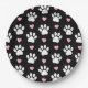 Pattern Of Paws, Dog Paws, White Paws, Pink Hearts Paper Plate