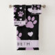 Pattern Of Paws, Lilac Paws, Hearts, Your Name Bath Towel Set