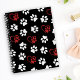 Cute, fun and adorable pattern with white paws and red and hearts on black background. Modern and trendy gift, perfect for the dog lover in your life.
