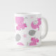Pattern Of Pink Elephants, Cute Elephants, Stars Large Coffee Mug