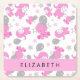 Pattern Of Pink Elephants, Stars, Your Name Square Paper Coaster