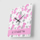 Pattern Of Pink Elephants, Stars, Your Name Square Wall Clock