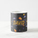 Pattern space orange black name coffee mug