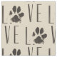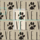 Fabric with a repeating pattern of a cute illustration of a pet's paw print in brown with a grunge style. The letters spell out the word "Love" with the paw print in place of the letter "o". Awesome for pet lovers.
