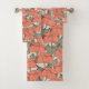 Vintage floral pattern with coral lily and leaves on beige background. Red flowers with outline. Summer print with botanical garden