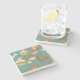 The coasters are gorgeous, a quality feel and heavy weight. They look like a precious archeological find. A rustic stone juxtaposed with a modern floral black and white print. I like the way the print goes slightly imperfect on the cut stone edges giving them a kind-of natural beauty.
