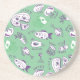 I'm not sure how much moisture these will soak up, haven't had a chance to try them out, but they look good and I like the cork backing. The printing is fine ~ and really looks cool with an artisan's hand made "Hurricane Martini" glass sitting on top of my painting (on the coaster) in my studio.