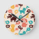 Pattern With Funny Cats And Dogs Round Clock