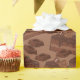 Pattern with pieces of chocolate cake with waffles and chocolates decoration. Illustration for confectionery or bakery.