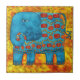 A colourful patterned elephant watercolour ceramic tile. Art by Julie Nicholls©