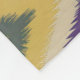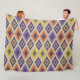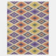This design features a bold and colourful geometric pattern, inspired by traditional tribal motifs. It showcases repeating diamond shapes in vibrant hues of purple, orange, green, and yellow, with intricate zigzag details at the centre of each diamond. The overall look has a textured, woven appearance, giving it a dynamic and tactile quality. The contrast between the warm and cool tones creates a visually striking effect, perfect for a cosy fleece blanket. The pattern has a rhythmic flow, making it both eye-catching and soothing.