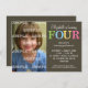 The word "Four" stands out on this birthday party invitation for any child turning four years old. Each letter is treated with a different colourful pattern. All the party information prints against rich brown. Add a picture of the child to the left and add any extra information on the reverse or just delete it to leave the back blank. Available with matching products.