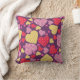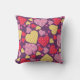 This pillow features a purple background with colourful patterned hearts scattered in a collage.