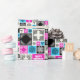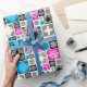 Patterned tiles on birthday wrapping paper. Use "Personalize this template" to change the "Happy Birthday Sarah! Best Sister Ever" name & relationship text and create a unique, customized paper. Add a personal touch to your gift wrapping with this bold and colorful pattern featuring decorative tiles of various sizes and varied patterns. Black designs on black, white, blue and magenta backgrounds. All patterns were designed and drawn by me and are inspired by Celtic and Mughal design.