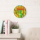 Patterned giraffe watercolour illustration clock. A colourful fun clock that would be perfect for any room in your home, including kids playrooms and little one's nurseries. Design by Julie Nicholls©