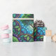 Patterned wrapping paper with vibrant green, blue, and purple colors. Features intricate Celtic knot designs and detailed tree motifs, creating a mystical and earthy feel.
