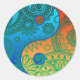 Patterned Yin Yang Orange and Blue Classic Round Sticker