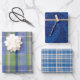 Plaids and a paisley in shades of blue are great for wrapping gifts for the men in your life.