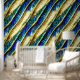 Paua blue gold abalone shell mural pattern wallpaper