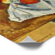 Reproduction art poster depicting the famous Still Life painting "Basket of Apples" by renowned French Post Impressionist artist Paul Cezanne (1839-1906). Featured in the artwork is a brown wicker fruit bowl sitting adjacent to a wine bottle and a dish of pastries over a white cloth. Within the bowl are green, yellow, and red apples. Some of which spill from the bowl to the cloth. The apples are commonly mistaken to be pears or oranges due to their colour. The right side of the table is not the in the same plane as the left side. Cezanne incorporated his technique in the painting to show the differences in viewpoint. c. 1895 Style: Post Impressionism Period: Final Period Technique: Oil ~ Customisable ~ Excellent as a Housewarming gift. Also known as "Apples and Pears" or "Apples and Oranges"