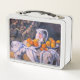 This is a standard metal lunchbox that appears to work just fine. We designed this box ourselves with an uploaded photo and custom text on the front and back. It looks absolutely beautiful except the front of the lunchbox is not centered like it shows in the photo. The print borders don't align with the inset flat part of the box where the preview photo online showed it perfectly centered in there. The back looks nice and centered though.