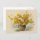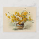 Postcard inspired by a watercolor by floral artist Paul de Longpré, called Daisies and Bachelor's buttons. The picture shows a round decorative vase overflowing with happy yellow and white flowers. Use for birthdays and other celebrations, or whenever you want to spread some sunshine! :)