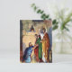 This Paul in jail at philippi postcard has Paul in jain on his knees beside a fire praying to get out of jail