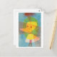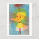 This postcard is a reproduction of a 1929 Paul Klee painting called "Kleiner Gartengeist" or "Little Garden Ghost." It somewhat resembles a yellow rubber duck.