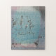 Paul Klee Twittering Machine puzzle. Watercolor and pen and ink on paper from 1922. Swiss German artist Paul Klee worked in a variety of different styles throughout his career, and Twittering Machine exhibits his tendency to draw inspiration from different artistic movements. The painting depicts biology and machinery as a group of line drawn birds sit on a wire connected to a hand-crank. The work is both beautiful and terrifying with its subtle use of watercolor purples and blues. A great gift for fans of Paul Klee, German art, and expressionism.