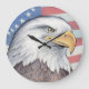 A patriotic clock by the award-winning artist Paul McGehee. "American Bald Eagle" shows the living symbol of the United States of America, the Bald Eagle. This stately bird was chosen as our national symbol in 1782 because of the eagle's strength and longevity.