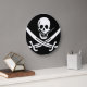 A decorative clock displaying the Caribbean pirate flag of Captain John "Jack" Rackham, better known as the infamous Calico Jack. Calico Jack was one of the most feared pirates in Caribbean waters, and is credited with designing the first "Jolly Roger" skull flag! This great "Calico Jack's Flag" clock comes in three popular sizes. Perfect for any pirate-themed room or island decor.